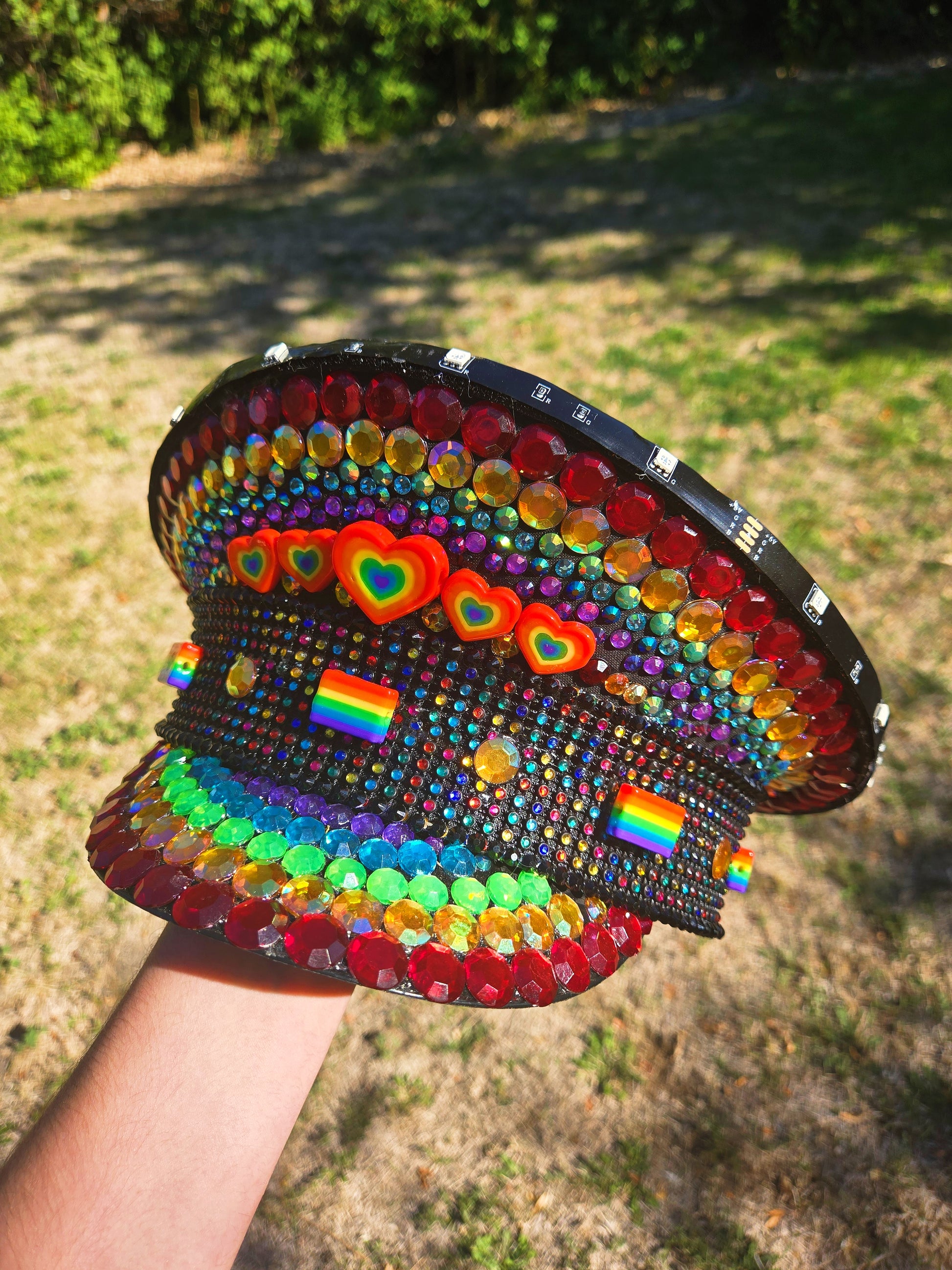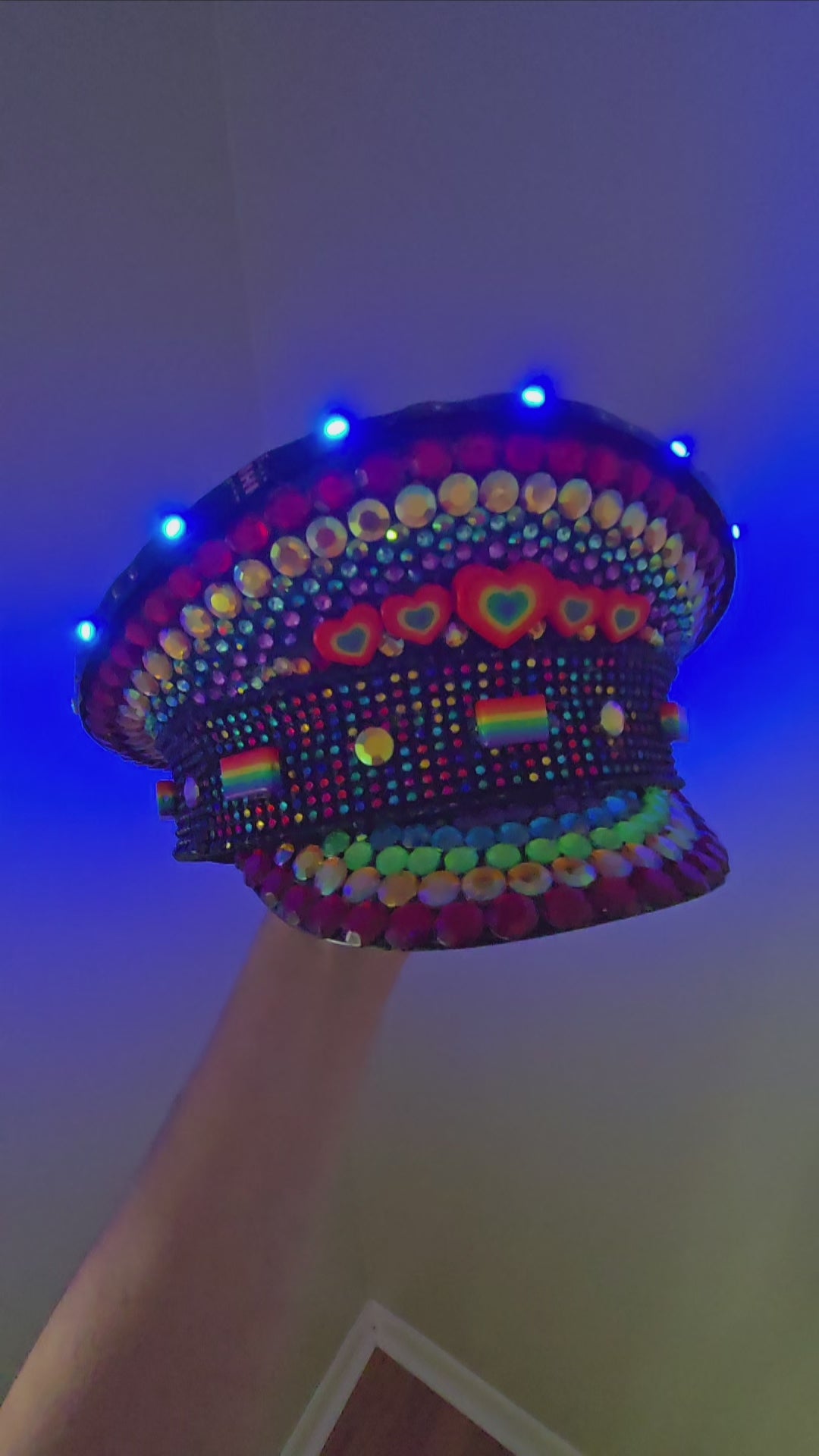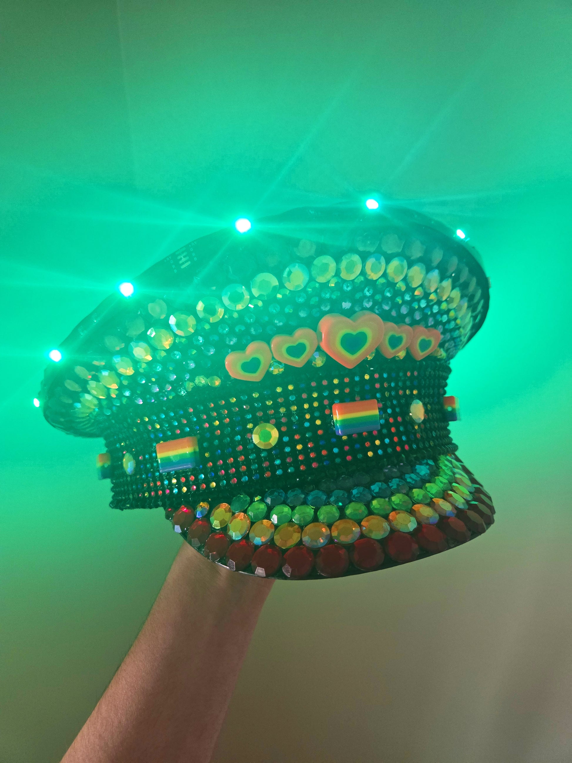 Celebrate your most authentic and colorful self with this especially fabulous collab with Bass Head Beads! Featuring rainbow crystals all over, a rainbow sequin fabric top, and of course, Bass Head Bead's pride flag and heart beads all over. Now with color changing LEDs that have a removable battery pack for extra convenience.