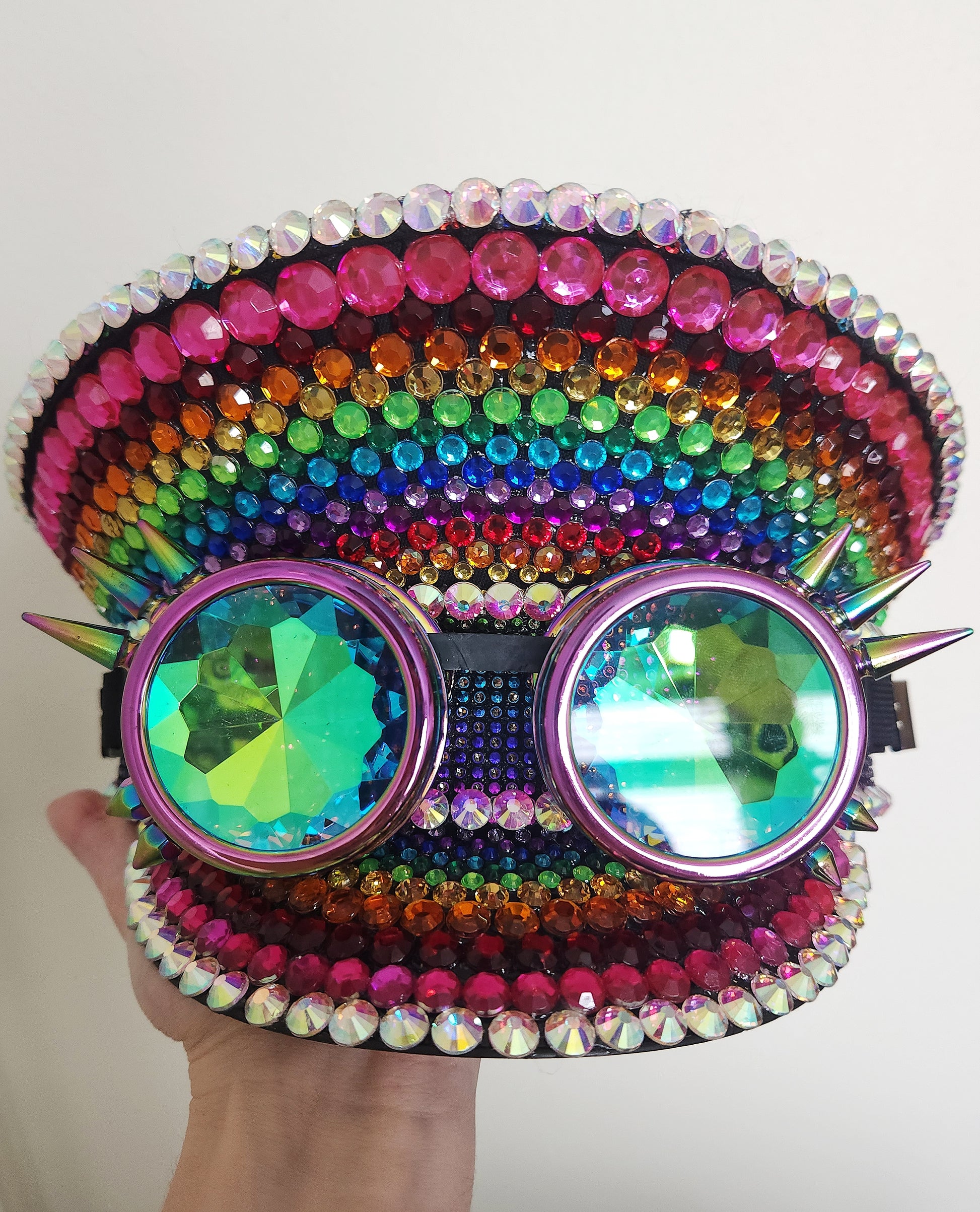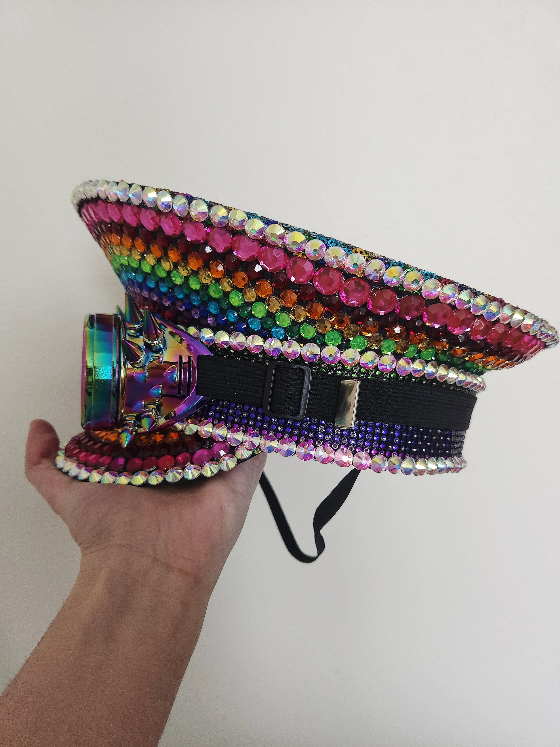Our signature rainbow hat, but with a little *twist*. Iridescent crystals and pink added to the rainbow make this beauty another need in your wardrobe. ✨️